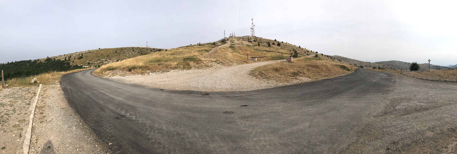 Once you've done the three ramps, you get to Pas de la Graille (1597m), which is the col that gives passage over the mountain. There's a nice viewing area up here and a small car park, but it's not the actual summit. Nonetheless, seeing both north and south from one point reinforces that you're in mountainous terrain for real, proper cycling territory. From here the road surface surprisingly goes a bit awry; smoothish tarmac blends into stretches of rougher chipseal that despite the gradient hovering around 3%, makes things a bit of a drag. Still, by this point you can see the weather station and that brings visions of Le Tour at the summit of Ventoux, if only for a moment until you realise this isn't exactly the same. This last two miles is fully exposed and thankfully, there's a cooling breeze that doesn't hamper progress but makes things much more comfortable.